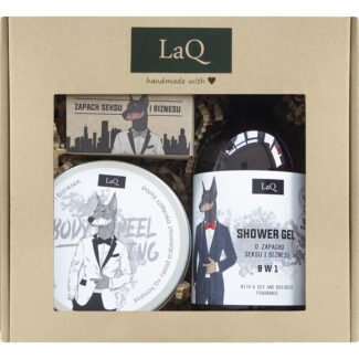 LaQ Doberman zestaw żel pod prysznic 500ml + mydło w kostce 85g + peeling do ciała 200ml