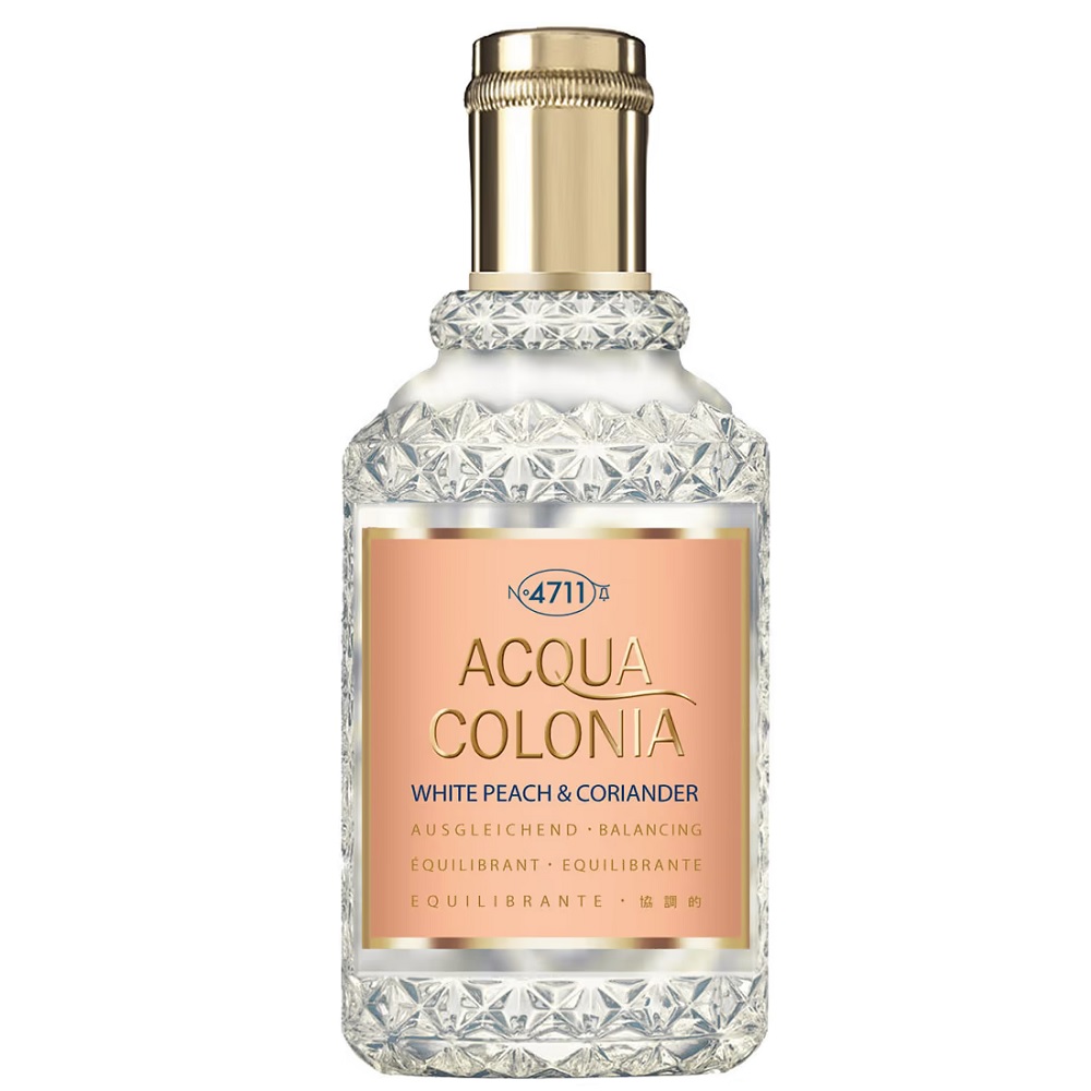 Acqua Colonia White Peach & Coriander to woda kolońska od marki 4711. Aromatyczno-owocowa kompozycja zapachowa wydana w 2017 roku. Urzekający zapach zaskakujący świeżością i lekkością. Nuty zapachowe: biała brzoskwinia, kolendra, cytrusy, nuty ziołowe, nuty zielone
