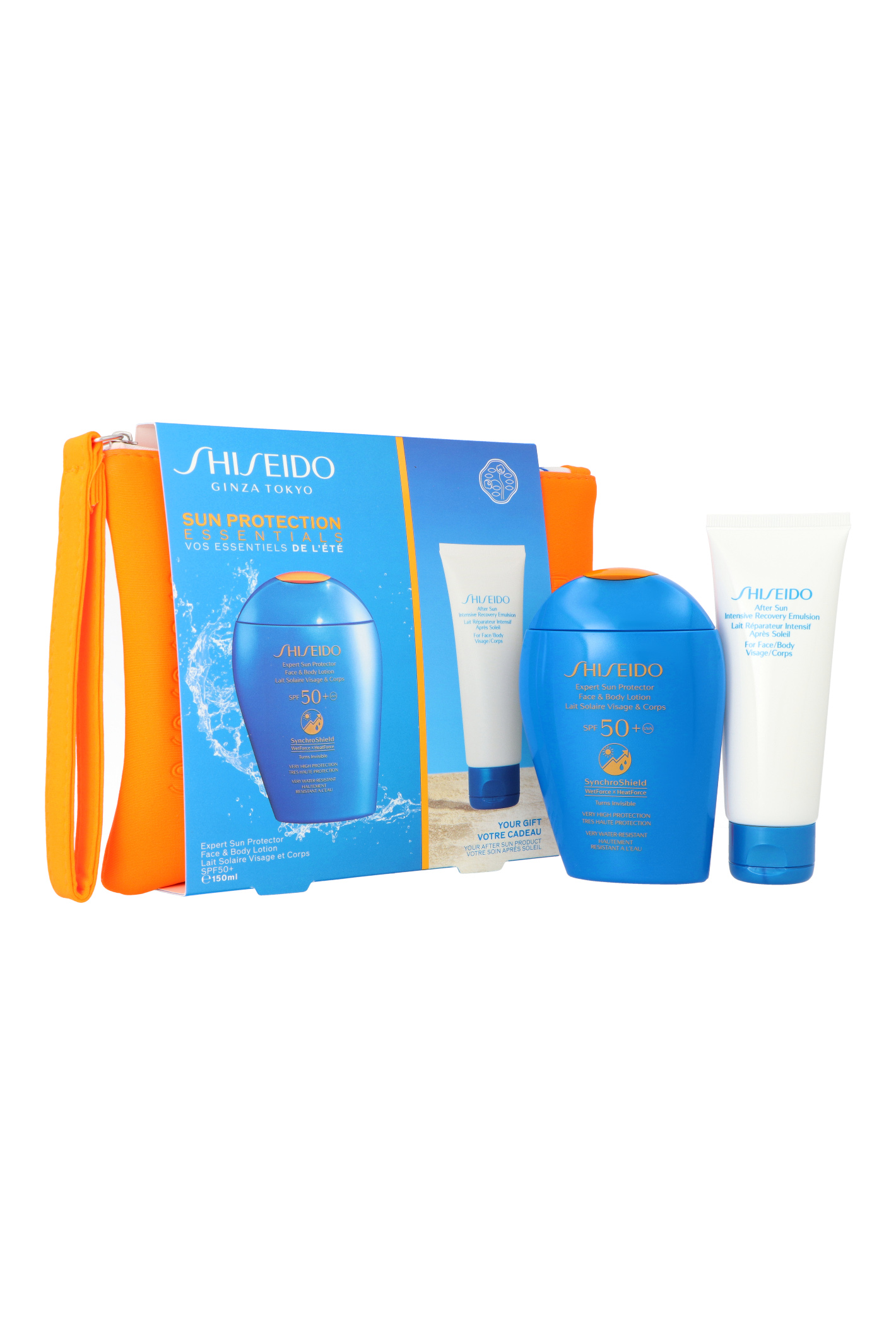 Zestaw Shiseido Sun Protection Essentials Face & Body Lotion SPF50 150ml + After Sun Emulsion 75ml + Pouch